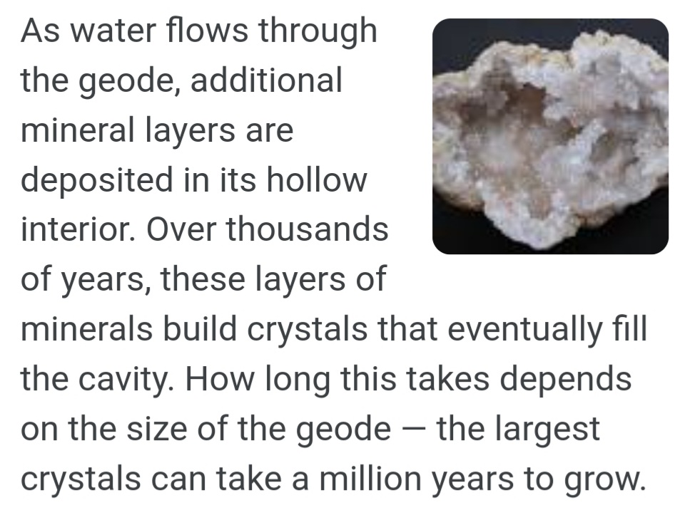 https://scienceline.org/2012/11/where-do-geodes-come-from/#:~:text=As%20water%20flows%20through%20the,a%20million%20years%20to%20grow