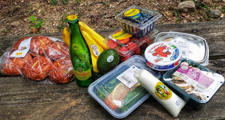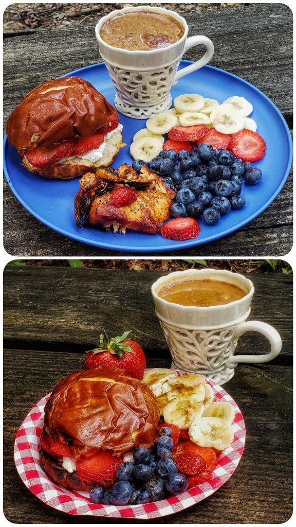 This was salmon that I reheated on the grill. This cheese was a specialty goat cheese, recommended by my sister who raises dairy goats. Between the delicious food & the wonderful setting, this was one of my favorite (& healthiest) meals on this trip. πŸ’•