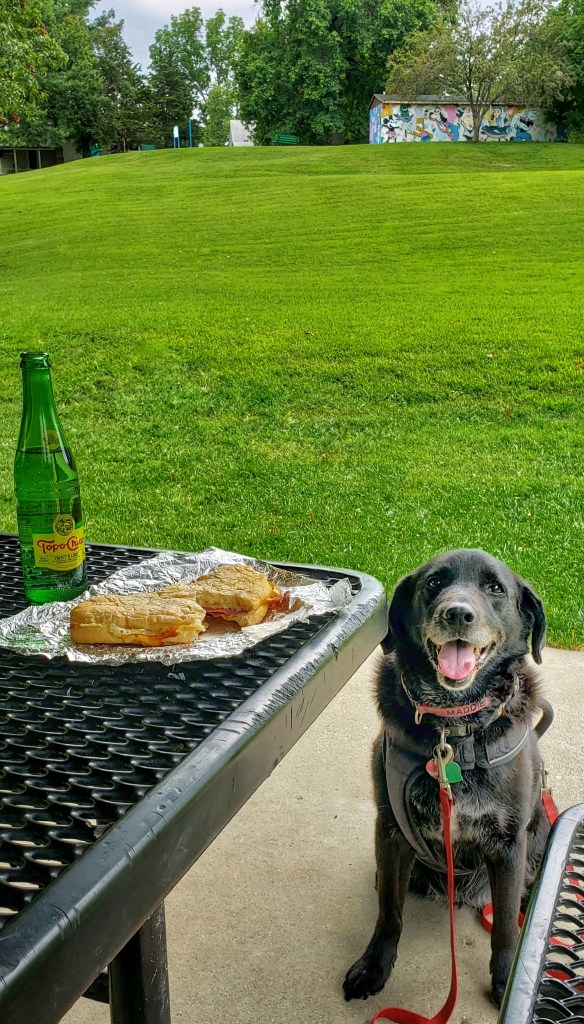 Indiana has an Ice Cream Trail, featuring ice cream shops all over the state. I drove 15 miles each way to Jiffy Treets & it did not disappoint! I devoured a “small” S’mores sundae with mint chip ice cream. πŸ’• Maddie got their “special” dog ice cream, which is vanilla soft serve with a dog bone!