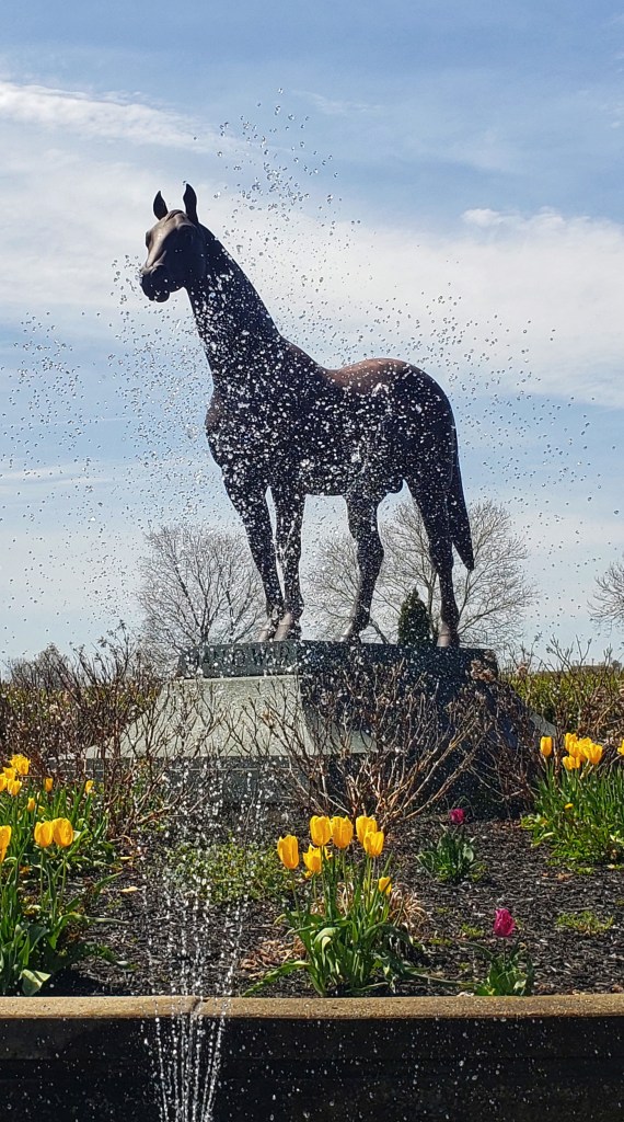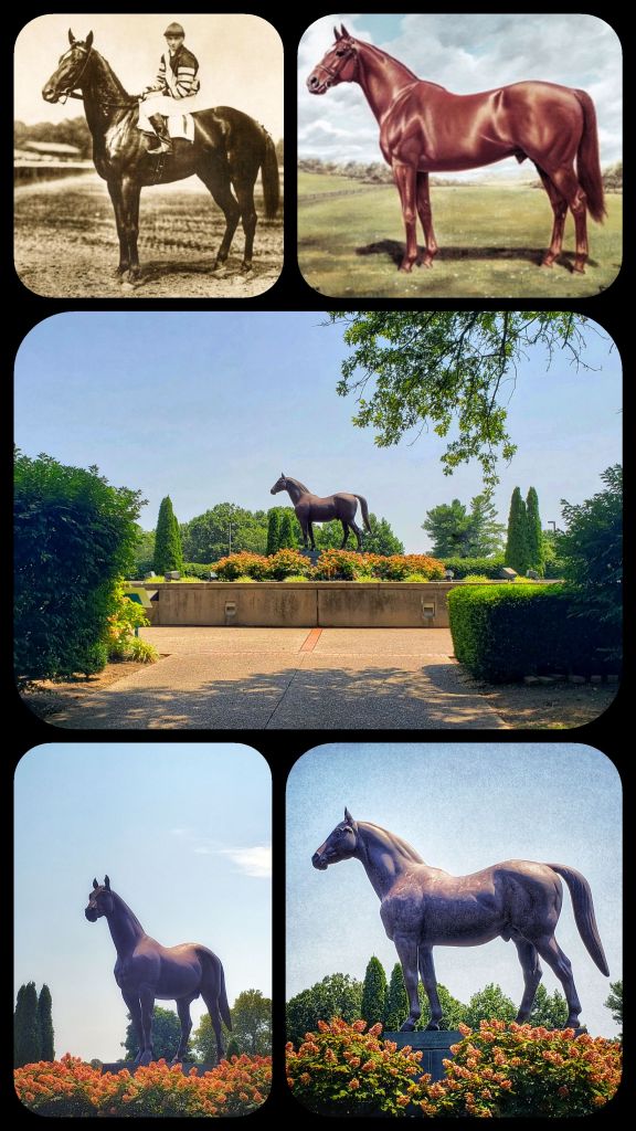 The only tribute I found for Barabaro at KHP was this little, cement block, half buried under a bush. I brushed it off & glamped it up with some color editing. I remember following Barbaro’s health crisis like he was a family member, Sadly, he never recovered. I didn’t go inside the museums, etc., so there might be mention of him somewhere else.