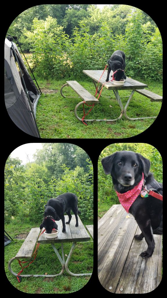 Luckily, Maddie & I are pretty sound sleepers because the arrow is pointing at the highway above the campground. Our campsite was less than 50 yards away. It’s a VERY BUSY stretch of highway & it was VERY LOUD 24/7. π€ It wasn’t exactly the peace & quiet generally associated with camping. To make it worse, there didn’t appear to be anyone available to answer questions. I checked in by text message, but there was no way to leave a message. The restrooms weren’t cleaned for the first 3 days we were there & they really needed some attention. π There was no TP, soap or paper towels. The trash was overflowing for 3 days. Unfortunately, I had no place to go, so we stayed. π€·ββοΈThis is the French Broad River. We were camping about 10 feet from the water. According to geologists, the French Broad River is the third oldest river in the world, older than the mountains it passes through. It’s extremely popular with kayakers & paddleboarders, so we had a continuous parade floating by us. It’s also home to venomous copperheads & timber rattlesnakes. ππ³πDespite being a lab mix with webbed feet, Maddie hates getting her feet wet. π€·ββοΈ Our campsite was very damp & soggy for our entire visit, so she came up with a creative solution for herself! At 13.5, she had no problem hopping up onto our picnic table! Normally, I wouldn’t allow it, but I thought we might get the management’s attention. Nope. Maddie ate all of her meals on the table. π It also kept her out of the grass & away from any unwelcome visitors…πAboutMallory: https://www.chestnutasheville.com/humans-of-chestnut-pastry-chef-mallory-foster