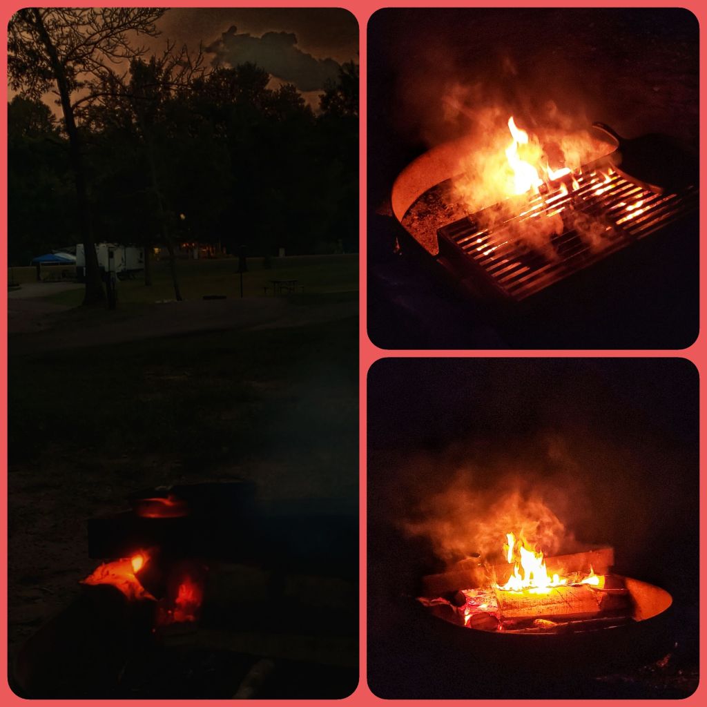 To prevent transporting harmful bugs to other areas, you’re not supposed to move firewood from place to place.I had purchased firewood & hadn’t used it yet, so I decided to make a fire & enjoy it on our second to last night there. It just might keep the bears & snakes away!